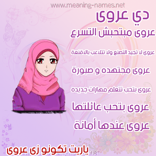 ما معنى اسمي عروى ؟ uv,n ? what the meaning of Arwa معاني كلمة عروى قاموس الأسماء و المعاني و الكلمات .