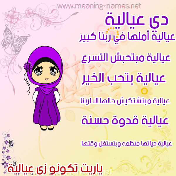 ما معنى اسمي عيالية ؟ udhgdm ? what the meaning of A'lia معاني كلمة عيالية قاموس الأسماء و المعاني و الكلمات .