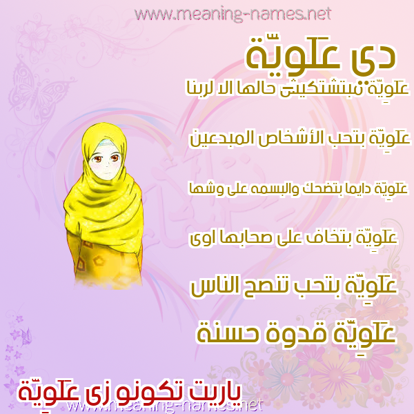 صفات حامل إسم عَلَوِيَّة و معنى اسم عَلَوِيَّة في قاموس المعاني و الأسماء