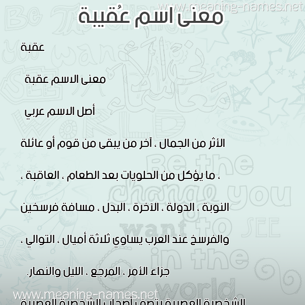 صفات حامل إسم عُقيبة و معنى اسم عُقيبة في قاموس المعاني و الأسماء