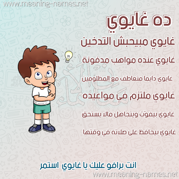 ما معنى اسمي غايوي ؟ yhd,d ? what the meaning of Ghawi معاني كلمة غايوي قاموس الأسماء و المعاني و الكلمات .