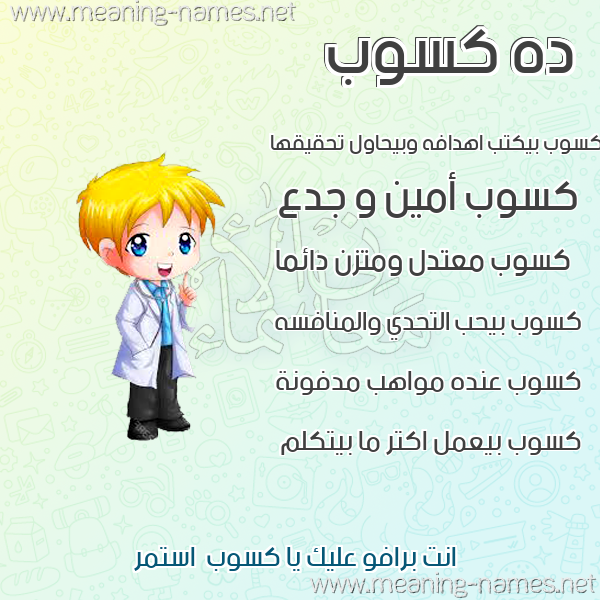 ما معنى اسمي كسوب ؟ ;s,f ? what the meaning of Kswb معاني كلمة كسوب قاموس الأسماء و المعاني و الكلمات .