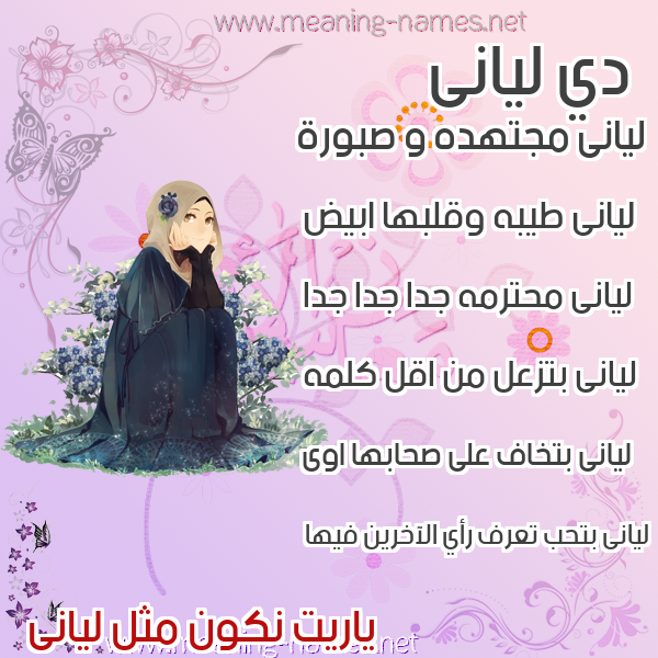 ما معنى اسمي ليانى ؟ gdhkn ? what the meaning of Layan معاني كلمة ليانى قاموس الأسماء و المعاني و الكلمات .