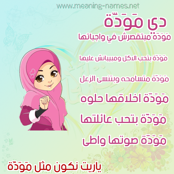 صفات حامل إسم مَوَدَّة و معنى اسم مَوَدَّة في قاموس المعاني و الأسماء