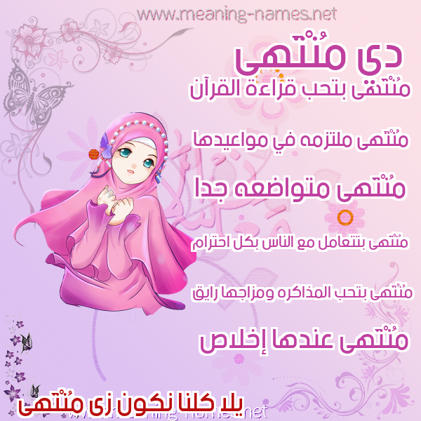 ما معنى اسمي مُنْتَهى ؟ lEkXjQin ? what the meaning of MONTAHA معاني كلمة مُنْتَهى قاموس الأسماء و المعاني و الكلمات .