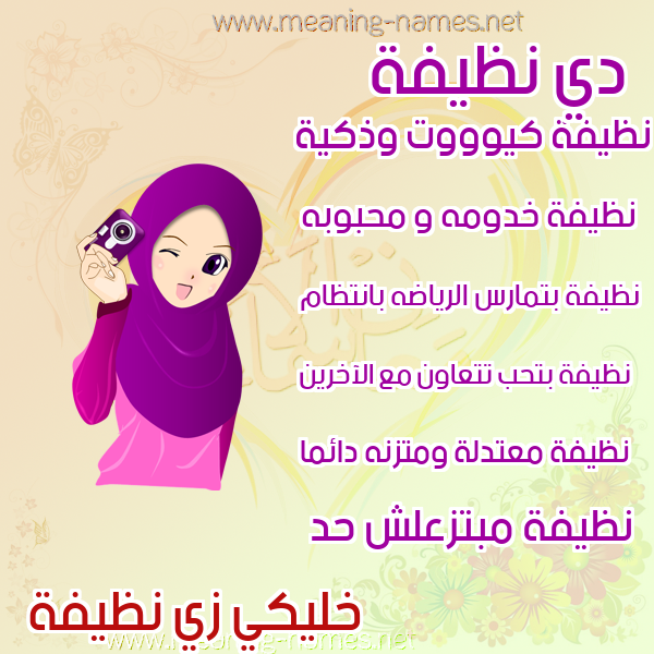 ما معنى اسمي نظيفة ؟ k/dtm ? what the meaning of NZIFH معاني كلمة نظيفة قاموس الأسماء و المعاني و الكلمات .
