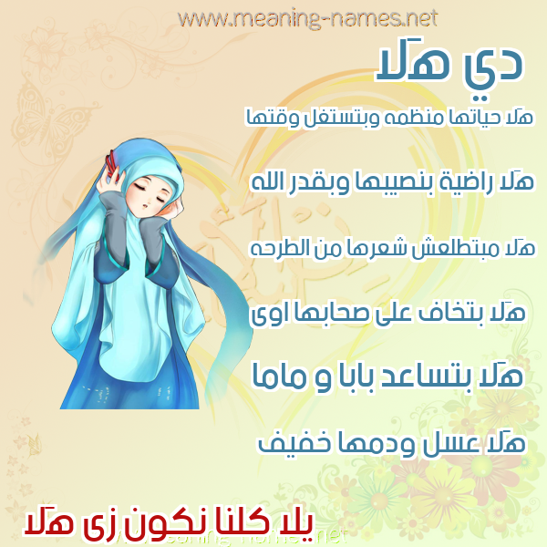 صفات حامل إسم هَلا و معنى اسم هَلا في قاموس المعاني و الأسماء