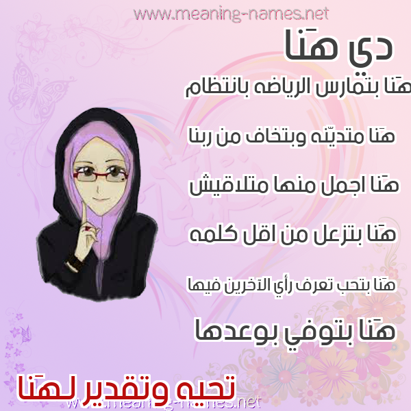 صفات حامل إسم هَنا و معنى اسم هَنا في قاموس المعاني و الأسماء