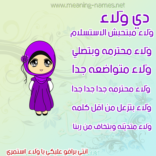 صفات حامل إسم وَلاء و معنى اسم وَلاء في قاموس المعاني و الأسماء