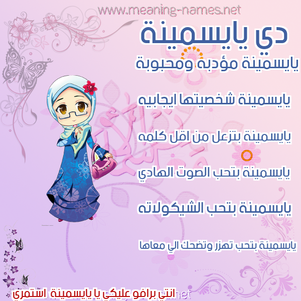 ما معنى اسمي يايسمينة ؟ dhdsldkm ? what the meaning of Yasmina معاني كلمة يايسمينة قاموس الأسماء و المعاني و الكلمات .