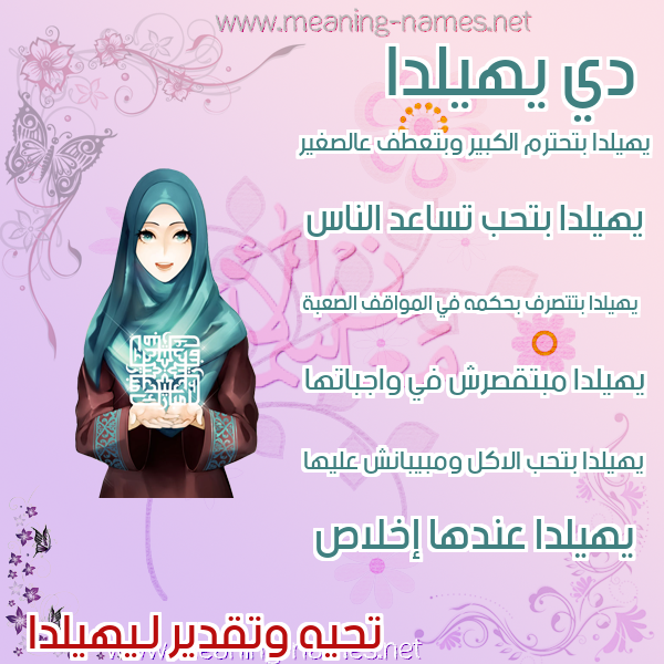 صفات حامل إسم يهيلدا و معنى اسم يهيلدا في قاموس المعاني و الأسماء