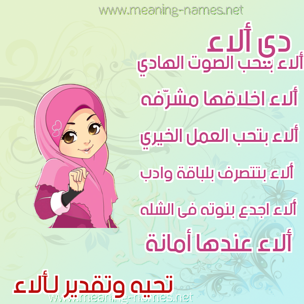 حكم التسمية بـ اسم أَلاء في قاموس المعاني و الأسماء