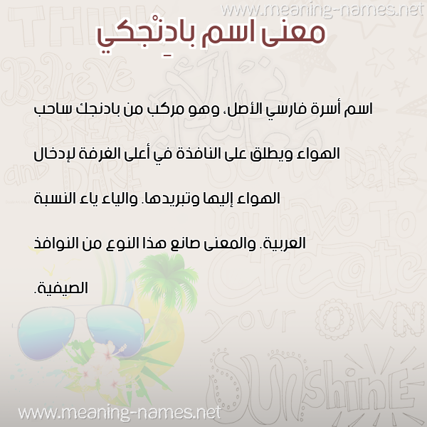 حكم التسمية بـ اسم بادِنْجكي في قاموس المعاني و الأسماء
