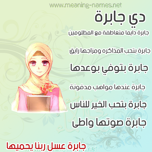 ما معنى اسمي جابرة ؟ [hfvm ? what the meaning of GABRH معاني كلمة جابرة قاموس الأسماء و المعاني و الكلمات .