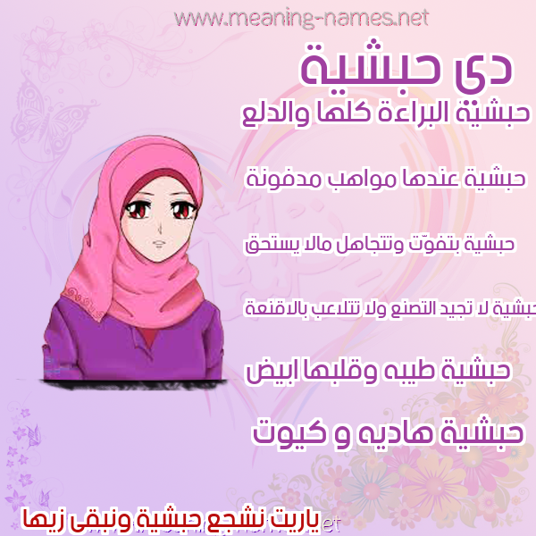 حكم التسمية بـ اسم حبشية في قاموس المعاني و الأسماء