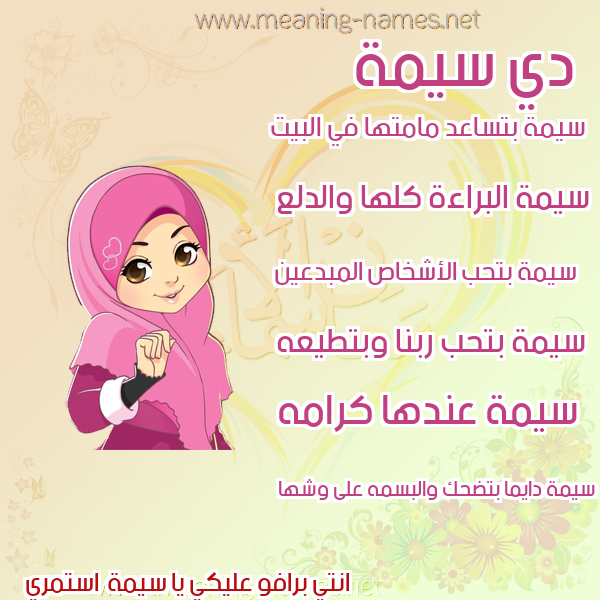 حكم التسمية بـ اسم سيمة في قاموس المعاني و الأسماء