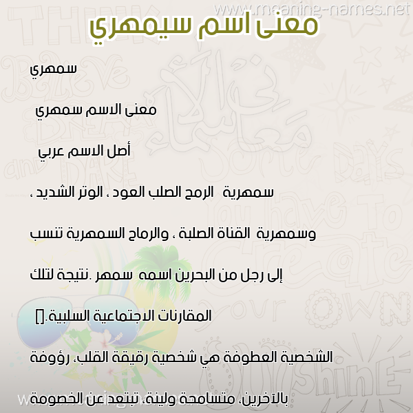 ما معنى اسمي سيمهري ؟ sdlivd ? what the meaning of Samhari معاني كلمة سيمهري قاموس الأسماء و المعاني و الكلمات .