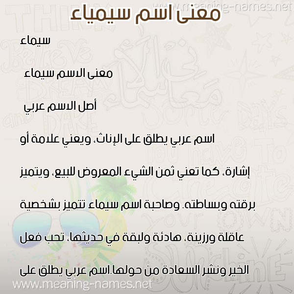 حكم التسمية بـ اسم سيمياء في قاموس المعاني و الأسماء