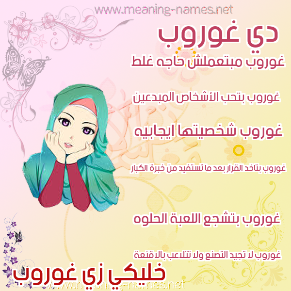 ما معنى اسمي غوروب ؟ y,v,f ? what the meaning of Ghuroub معاني كلمة غوروب قاموس الأسماء و المعاني و الكلمات .