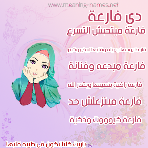 حكم التسمية بـ اسم فارعة في قاموس المعاني و الأسماء