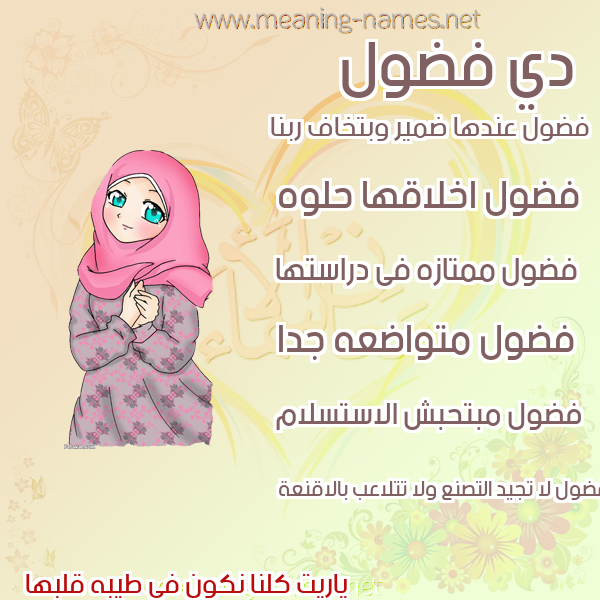 حكم التسمية بـ اسم فضول في قاموس المعاني و الأسماء