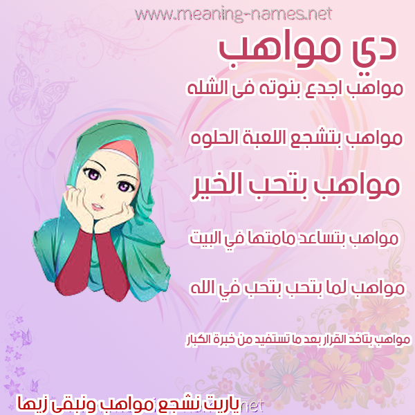 ما معنى اسمي مواهب ؟ l,hif ? what the meaning of Mwahb معاني كلمة مواهب قاموس الأسماء و المعاني و الكلمات .