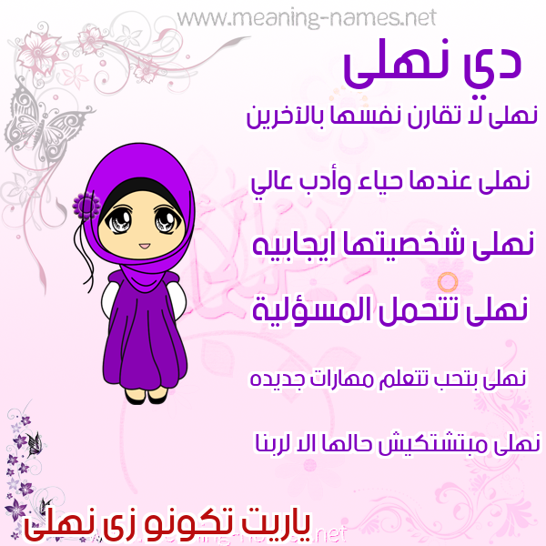 حكم التسمية بـ اسم نهلى في قاموس المعاني و الأسماء