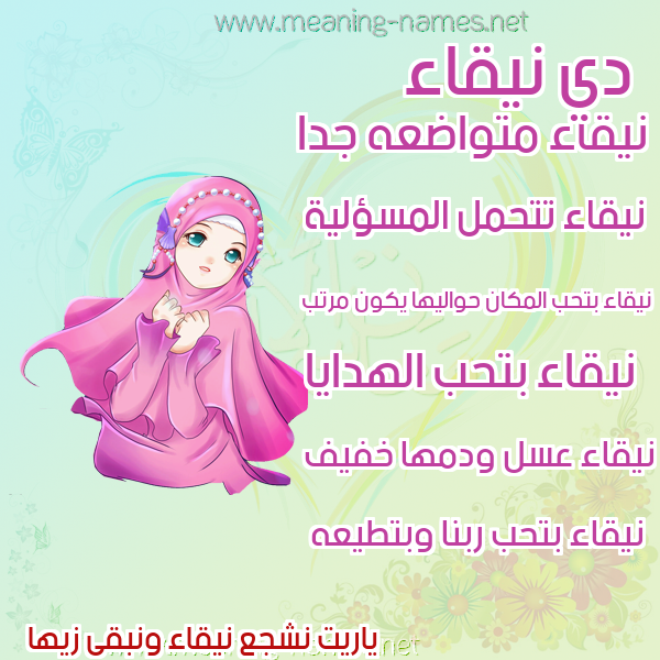 ما معنى اسمي نيقاء ؟ kdrhx ? what the meaning of Naqaa معاني كلمة نيقاء قاموس الأسماء و المعاني و الكلمات .