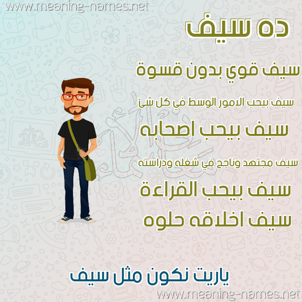 سمكة بحرية لها منقار طويل يمتد على شكل سيف، اسم كوكب، سلاح ذو حدّ يُضرب به باليد، ونتيجة للعلاقة الحميمة التي كانت تربط الإنسان العربي بسيفه، فقد أطلق عليه أسماءً وألقاباً عديدة ، وللتفصيل أكثر راجع الملحق .تقول العرب: ذَلَّ مَنْ لا سَيْفَ لَه *(32). و سلاح شهير ذو نصل طويل و معنى الاسم سيف : سلاح ذو نصل طويل...
