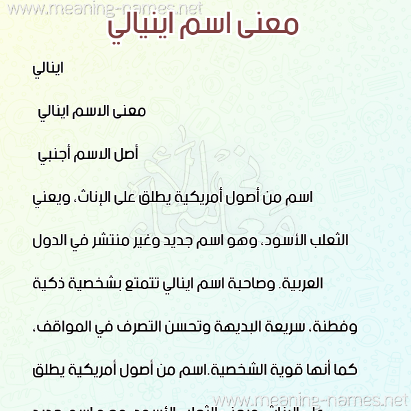معنى اسم اينيالي Inaliفي قاموس المعاني و الأسماء