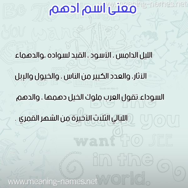 ما معنى اسمي ادهم ؟ h]il ? what the meaning of Adham معاني كلمة ادهم قاموس الأسماء و المعاني و الكلمات .
