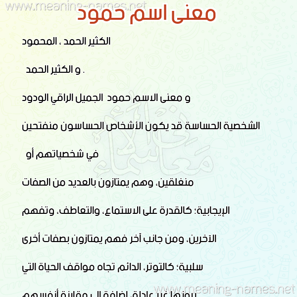 ما معنى اسمي حمود ؟ pl,] ? what the meaning of Hamoud معاني كلمة حمود قاموس الأسماء و المعاني و الكلمات .