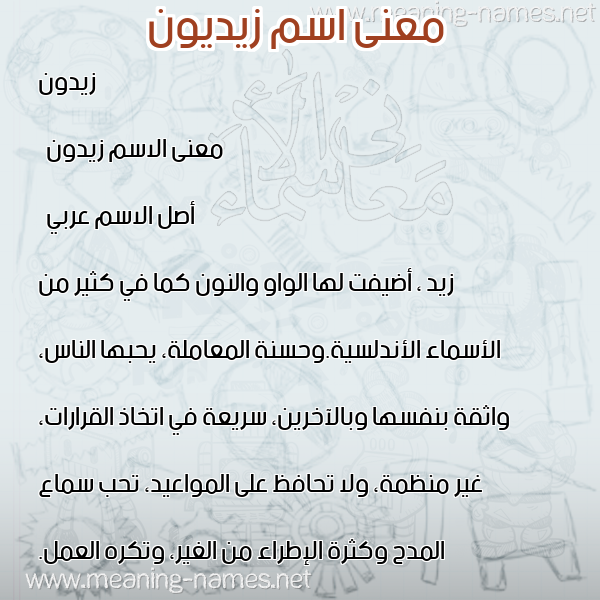 ما معنى اسمي زيديون ؟ .d]d,k ? what the meaning of Zaidoun معاني كلمة زيديون قاموس الأسماء و المعاني و الكلمات .